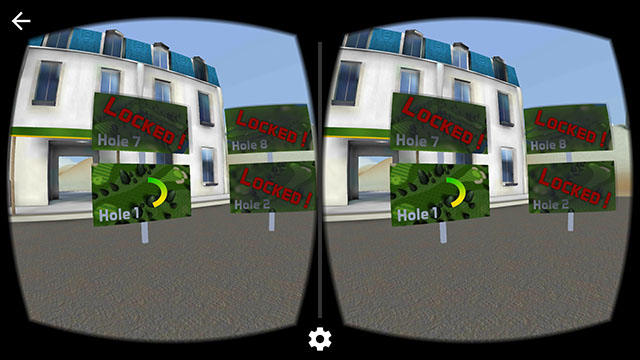 Golf VR propose certainement le meilleur gameplay disponible sur un jeu de réalité virtuelle, il vous suffit de regarder la balle pour amorcer le coup puis de bouger la tête pour lancer l’action. Tous les contrôles s’effectuent par Head tracking et c’est bien là l’originalité de ce jeu.