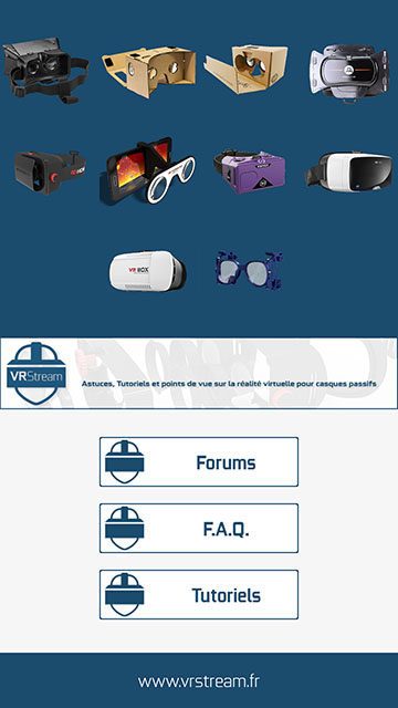Des liens vers les forums, la F.A.Q. de la VR et vers les tutoriels sont présent au sein de l’application. Celle-ci est encore en développement, l’idée est d’en faire une boîte à outils dédiée à la réalité virtuelle pour smartphones.