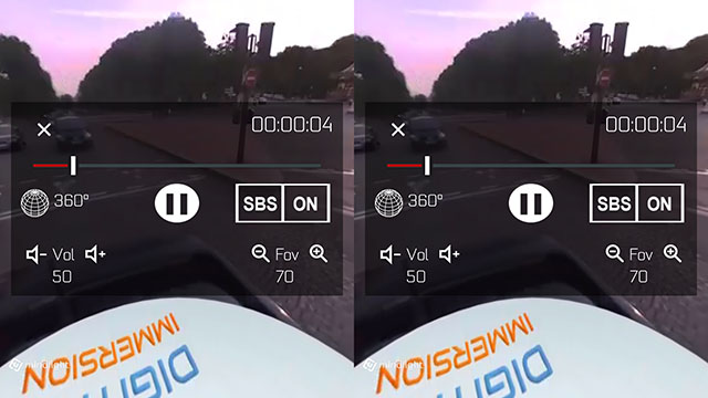 Le réglage du FOV est accessible en cours de lecture ainsi que le réglage du volume. Bien entendu l’Homido Player est capable de lire des vidéos 360 2D et 3D !