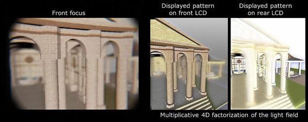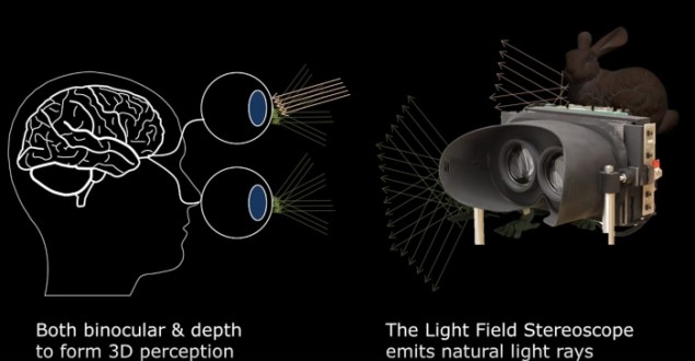 Cette technologie encore au stade de prototype permet à l’œil de faire le point sur différentes profondeurs. Le principe se rapproche de la stéréoscopie avec une différence de taille. Ce système offre une image stéréo à chaque œil.