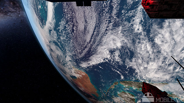 Cette application débute près d’une station spatiale en orbite autour de notre terre. Le but est simple, retrouver un être vivant. La modélisation de la terre est remarquable, et la sensation de flotter dans l’espace est bien présente. La capture des mouvements de la tête sert à se diriger , en premier lieu il faudra donc trouver le chemin permettant de se rendre sur terre.