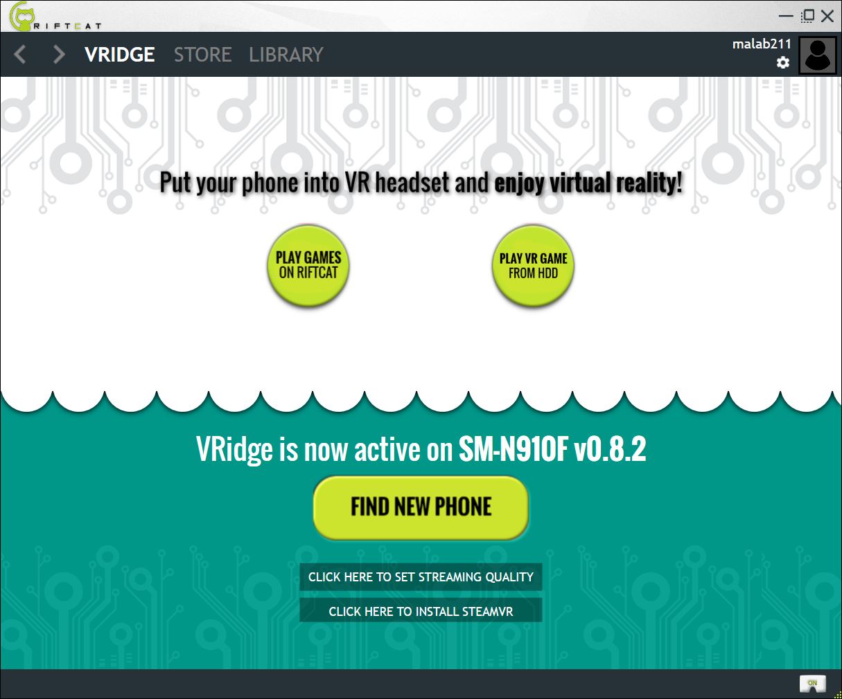 - Il ne vous reste plus qu’à lancer VRidge sur votre smartphone et lancer votre jeu SteamVR.