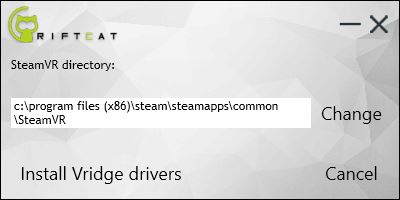 - Lancez RiftCat sur votre ordinateur puis sélectionnez « Install VRidge drivers »