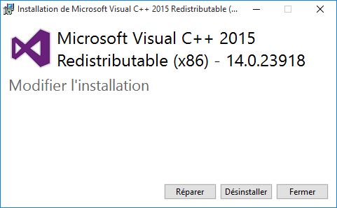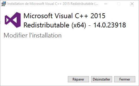 - Téléchargez et installez les deux versions de Microsoft Visual C++ 2015 Update 2