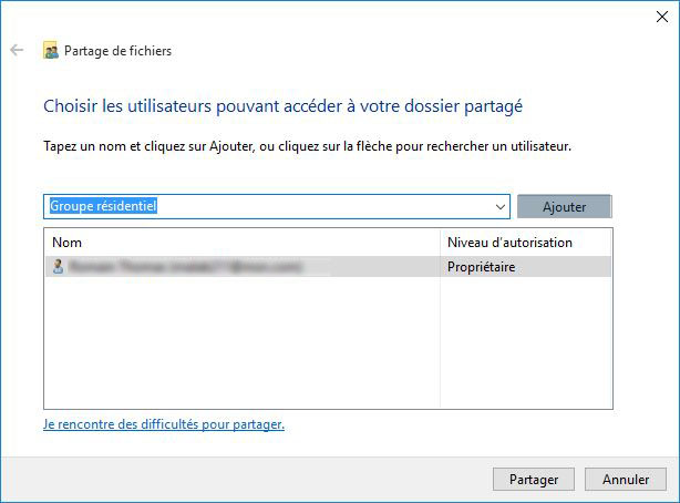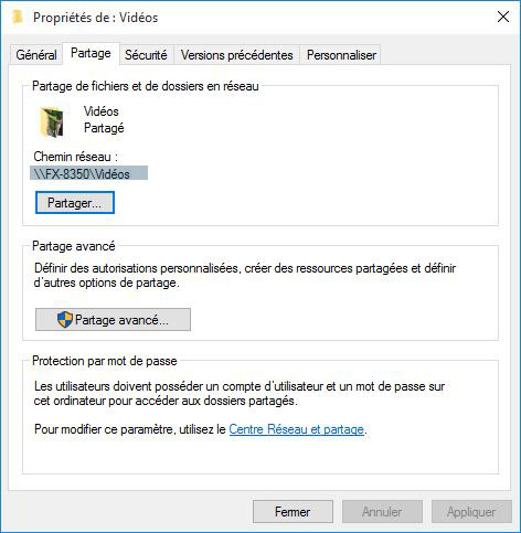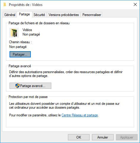 2- Rendez-vous sur l’onglet Partage puis cliquez sur « Partager… ».