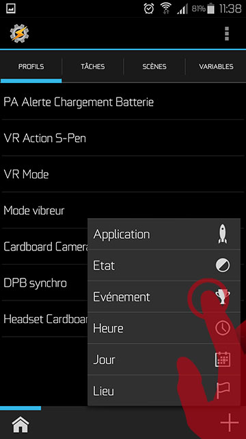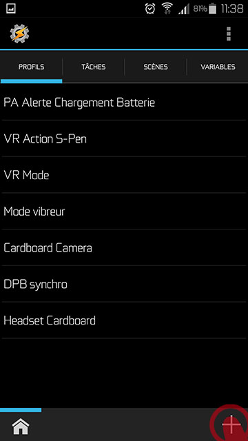 Maintenant que Tasker et Note buddy sont installé, ouvrez Tasker et allez sur l’onglet profil.