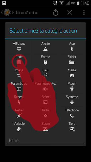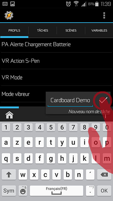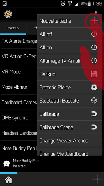 - Un Galaxy Note rooté (le root est nécessaire à Tasker pour simuler un appui sur l’écran)