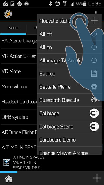 • Basculer l’état d’un autre profil comme par exemple celui permettant de mapper les boutons d’un casque bluetooth comme bouton d’action « Cardboard »
