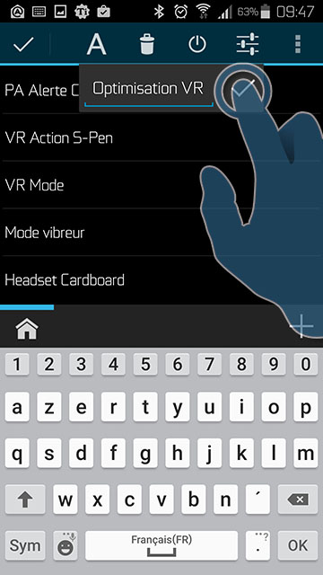 Si vous êtes à l’aise avec les notions de gouverneur CPU et connaissez les limites de votre processeur vous pouvez inclure dans vos taches, une action visant à modifier le gouverneur et/ou bloquer la fréquence de celui-ci uniquement lors de l’utilisation d’applications VR.