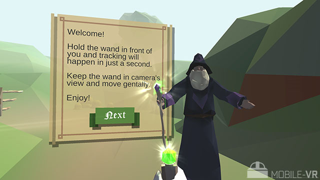 Wizard Academy reprend le gameplay de GermBuster et utilise par conséquent un QR Code à imprimer pour interagir avec l’environnement. Cette application est réalisée par Realiteer Corp, ce studio se spécialise depuis maintenant quelques mois dans les applications de réalité virtuelle utilisant le capteur photo du smartphone pour capturer la position d’un QR code tenu devant soi.